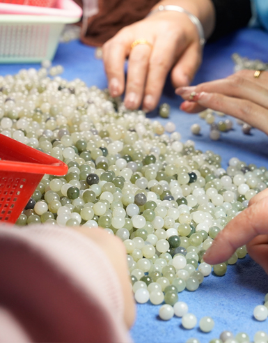公司经营范围主要以设计、生产及销售手镯、玉石挂件、金镶玉、裸石、吊坠、牌子、手工雕刻件、轴雕刻件、立体件、山水牌、观音佛、圆珠、老型珠、和田玉手链和项链为主。各类生产机器共有150余台:台钻18台,玉石专用锯床15台,电脑雕刻机50台,自动压珠机20台,珠子精加工相关设备32台,以及其他各类生产机器18台。各类机器调试完毕后,预估月产,圆珠7万粒,手镯5千支,电脑挂件3千件。预估年产圆珠77万粒,手镯5.5万支,电脑挂件3.3万件。截至目前共有用工人数25人,产品主销往广东,河南,浙江玉器市场和全国各地产业供应链直播间。